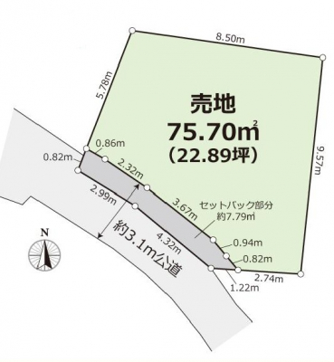 土地面積 | 84.7m² (25.62坪) | 坪単価 | 61.67万円 /坪 |